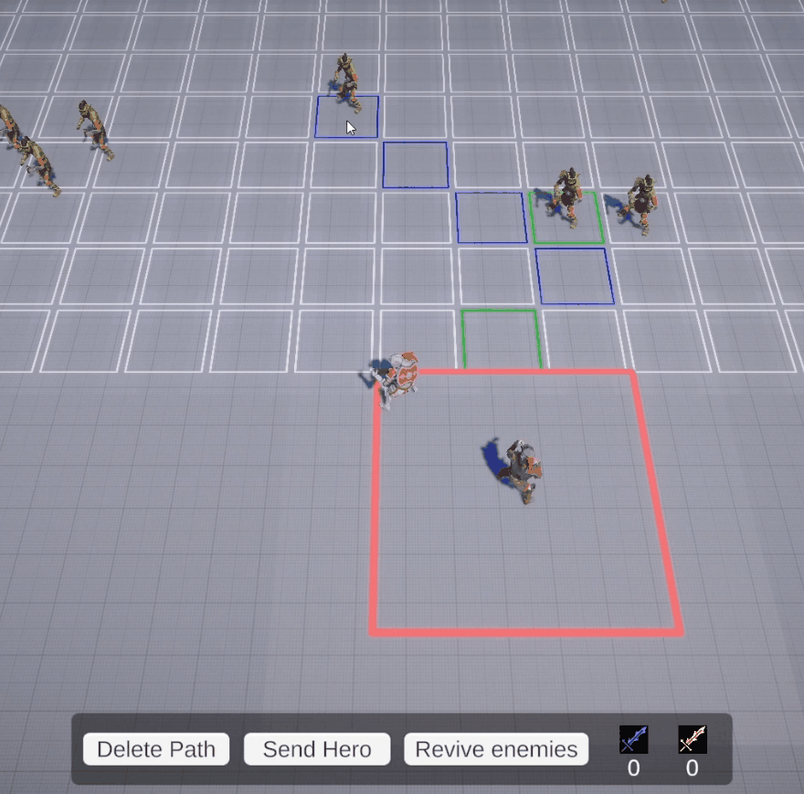To stay close to my hack & slash inspiration, I don’t want a machine doing those activities but heroes similar to the one we can play in the genre. That is why the player’s units are heroes with unique classes. Finding the enemies is a logistic challenge for the player since i want him to manage the path his heroes must take to kill the most enemies in the shortest time.